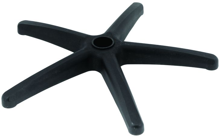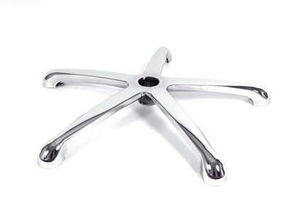 База, она-же крестовина, зачастую выполняется из металла, покрытого хромом, хотя не редкость и алюминиевая. Она ничуть не хуже по своим эксплуатационным качествам чем хромированная, зато легче и достаточно разнообразна в формах литья. Цельнолитыми металлическими крестовинами могут похвастаться редкие модели кресел. Самая распространенная база из металла выглядит как хромированное пятилучье с внешним пластиковым стаканом, который декорирует сварные швы.