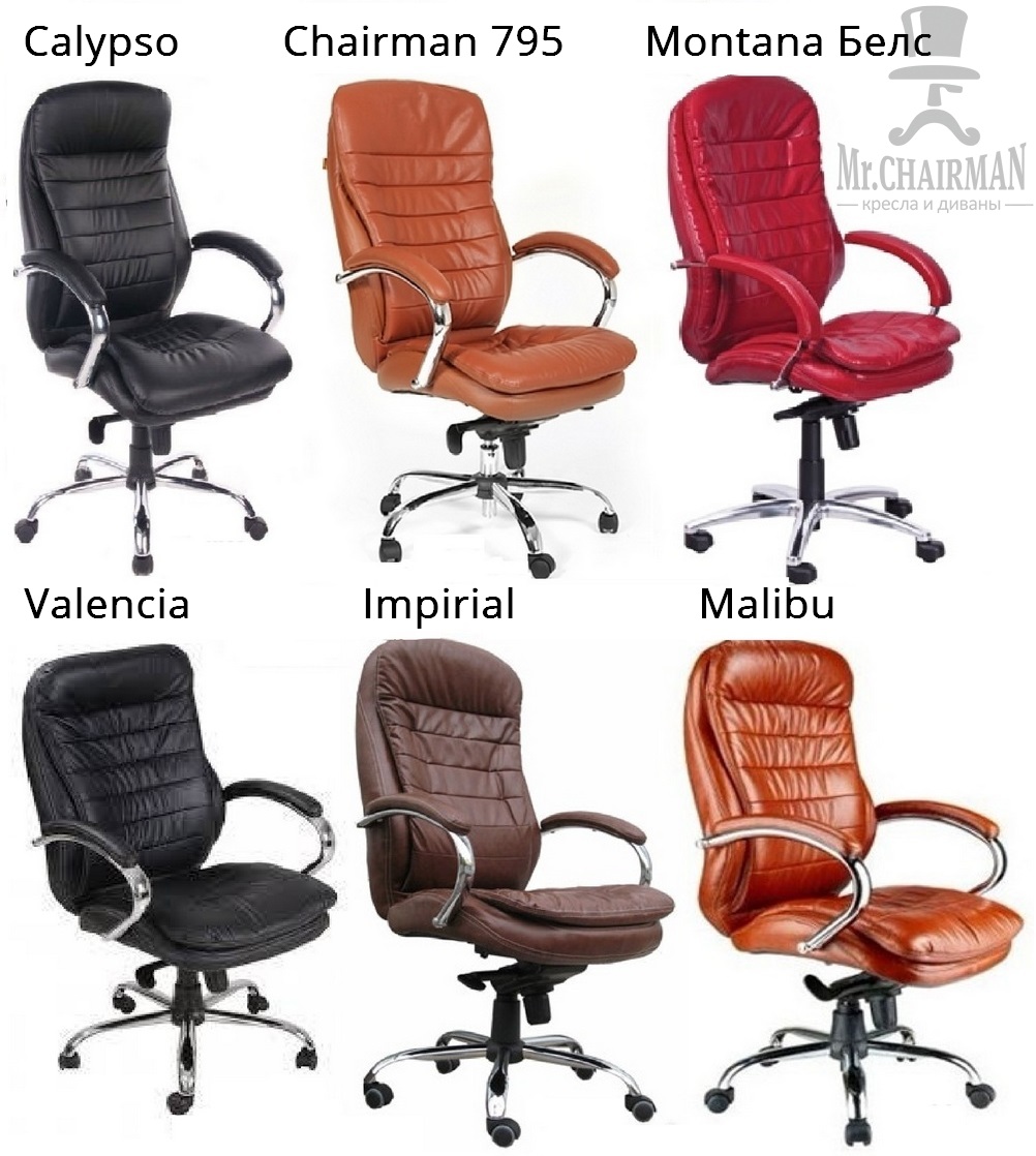 Для примера возьмем кресло не малоизвестной российской марки Chairman, модель 795, которое выпускается только в натуральной коже и хроме, с механизмом качания мультиблок и имеет внушительные размеры по высоте спинки и глубине посадки. Похожее кресло предлагает литовская компания Baldu Visata под названием «Malibu», в натуральной коже, а также в качественной эко-коже «Malibu PU». Как с хромированными подлокотниками и крестовиной, так и полиамидными («Malibu nylon»), как с механизмом качания мультиблок, так и с механизмом качания DMSL. Кресло «Malibu» самое малогабаритное среди моделей такого стиля. И конкурент у Chairman «795» не один: кресло Everprof «Valencia» , производитель не только продает Китайские модели, но и собственные в различных вариантах расцветки и материалов обивки, Ролмарк-Трейд «Calypso», Euston «Империал», Белс «Montana». И еще одно кресло присоединилось к этой компании в 2015 году - Metta LK-3.